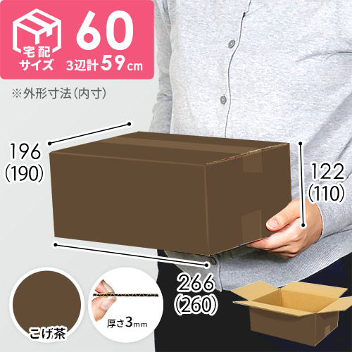 表面にこげ茶色のカラーライナーを使用した宅配60サイズのダンボール箱。高級感ある見た目に仕上がるため、通販商品の発送におすすめです。