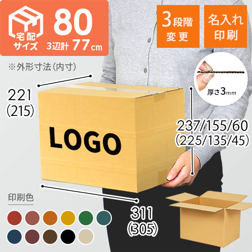 宅配80サイズの高さ変更可能白色ダンボールに、お客様のロゴや社名などを名入れ印刷します。(M-80Kと同サイズ)