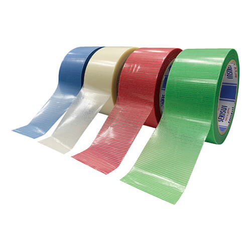 幅50mm×長さ25m×厚さ0.15mmで透明のクロステープ。丈夫で手切れが良く、作業性に優れています。半透明なのでテープ下の文字などが読めます。
