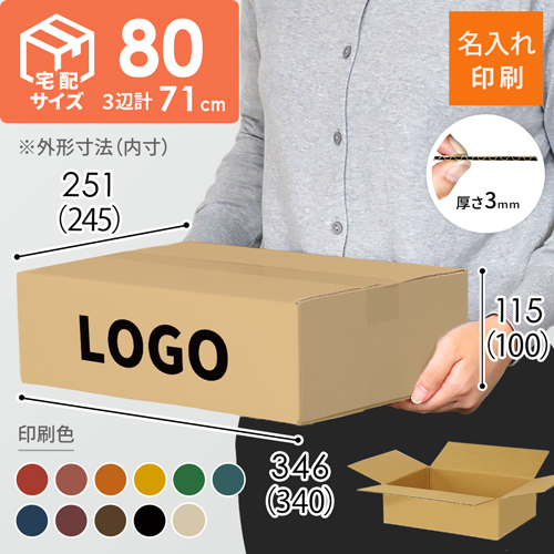宅配80サイズの白色ダンボール箱に、お客様のロゴや社名などを名入れ印刷します(80Aと同サイズ)。