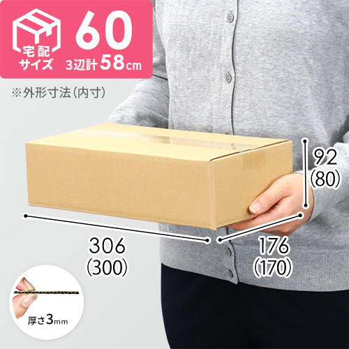 内寸300×170×80mmで、宅配60サイズに対応したダンボール箱。食品・飲料・お酒類を扱うお客様におすすめの仕様です!