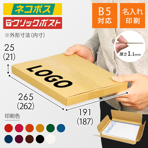 ネコポス・クリックポストサイズ、底面A4サイズの名入れ印刷メール便ケース(NPOSH29-Sと同寸法)