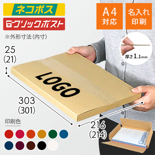 社名やロゴ等のお客様オリジナルデザインを印刷した、クリックポスト最小・ゆうパケット対応のN式メール便ケースです。