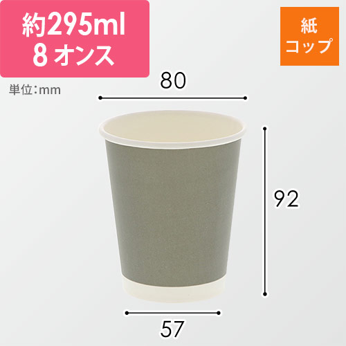 アイス・ホット用の紙コップ。サイズは口径80×底径57×高さ92mmです。テイクアウトドリンク用にいかがでしょうか。