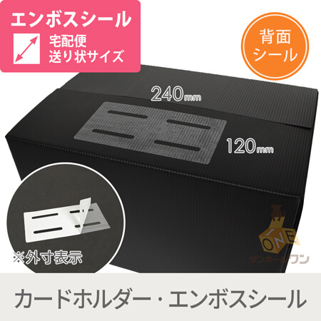送り状サイズのプラダン用エンボスシールです。プラダンケースに貼付して、その上に送り状を貼ると綺麗に剥がすことができます。