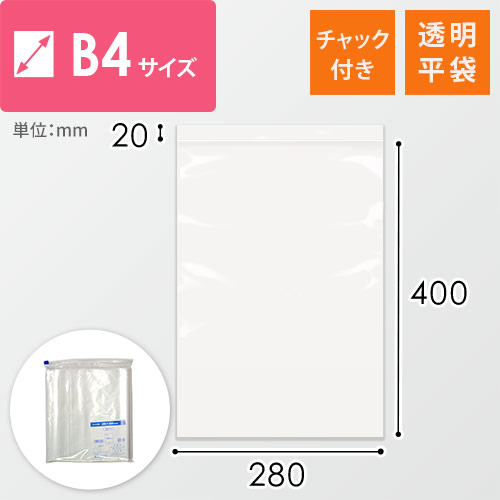 【B4サイズ】水に強いポリエチレンを使用したチャック付きの透明袋。様々な用途にご利用いただけます。本製品は、食品衛生法規格基準に適合しておりません。