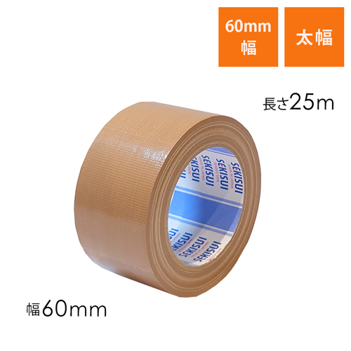 しっかり貼れる太幅!手で切れて丈夫な厚手の布テープ(布製ガムテープ)。通常幅だと心配な方におすすめな太幅・60mmです。重量物や宅配160サイズ以上の大型梱包に。