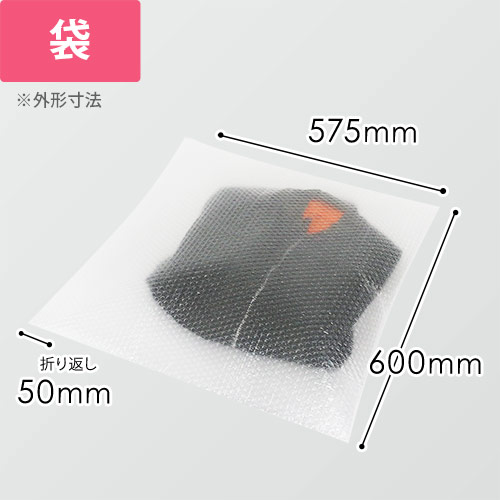 3層構造で強度がありスムーズに出し入れ可能なプチプチ袋。サイズは口幅600×深さ575+折り返し50mm(外寸)です。バックや靴、洋服などの梱包にいかがでしょうか。